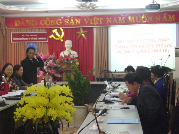 Nhằm nâng cao chất lượng, hiệu quả trong giảng dạy - học tập những môn lý luận chính trị, thực hiện thắng lợi mục tiêu đào tạo của Nhà trường, Khoa Lý luận chính trị - GDTC&QP tổ chức buổi Tọa đàm “Đổi mới phương pháp giảng dạy và học tập các môn Lý luận chính trị” vào ngày 30 tháng 12 năm 2014.